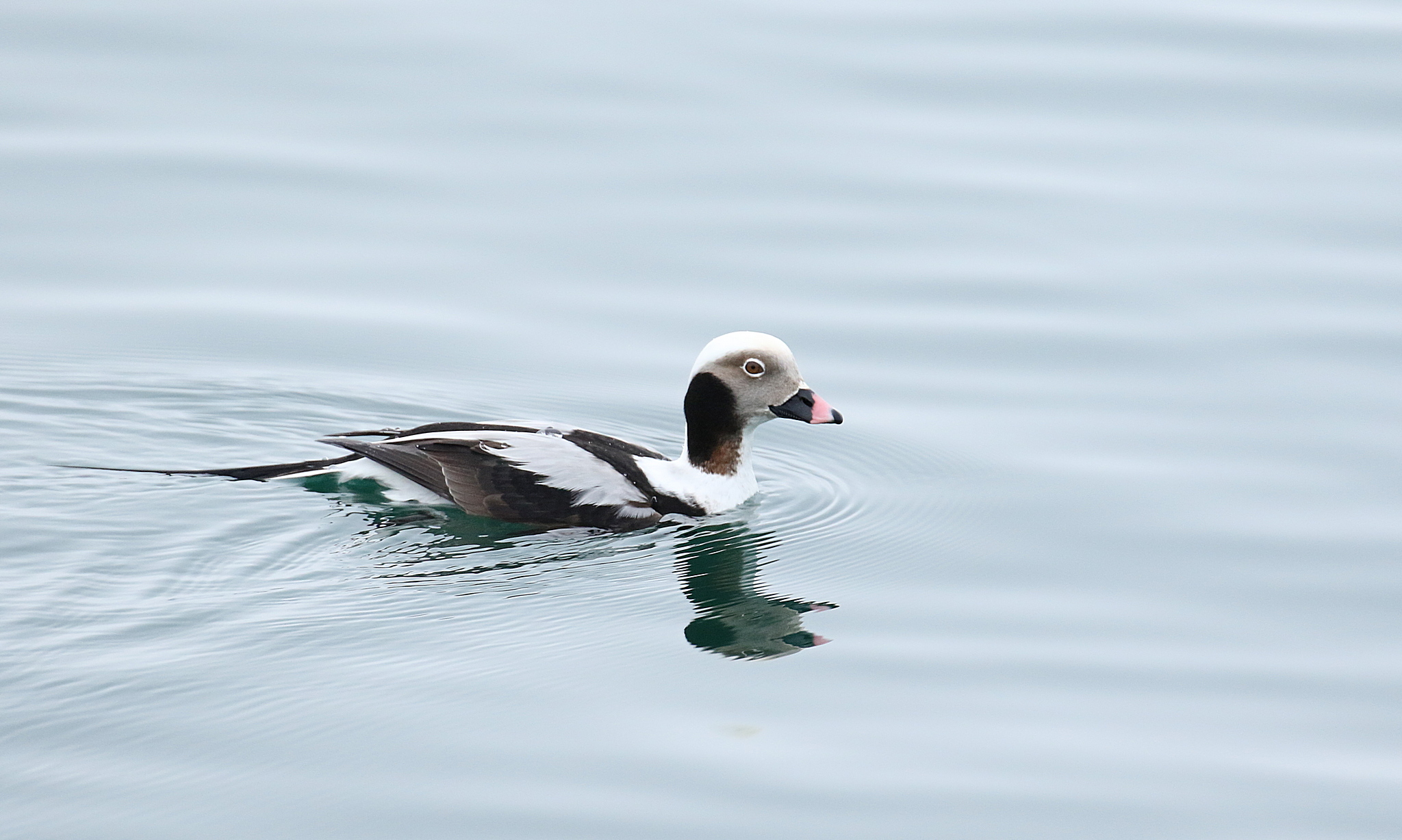 Long-tailed Duck by Steve Mirick, Hampton Beach, NH. Wintering sea ducks and other waterbirds arrive and will stay all winter. For some species, it is the only time we see them in New Hampshire: Long-tailed Ducks, scoters, Horned and Red-necked Grebes, Red-throated Loons.