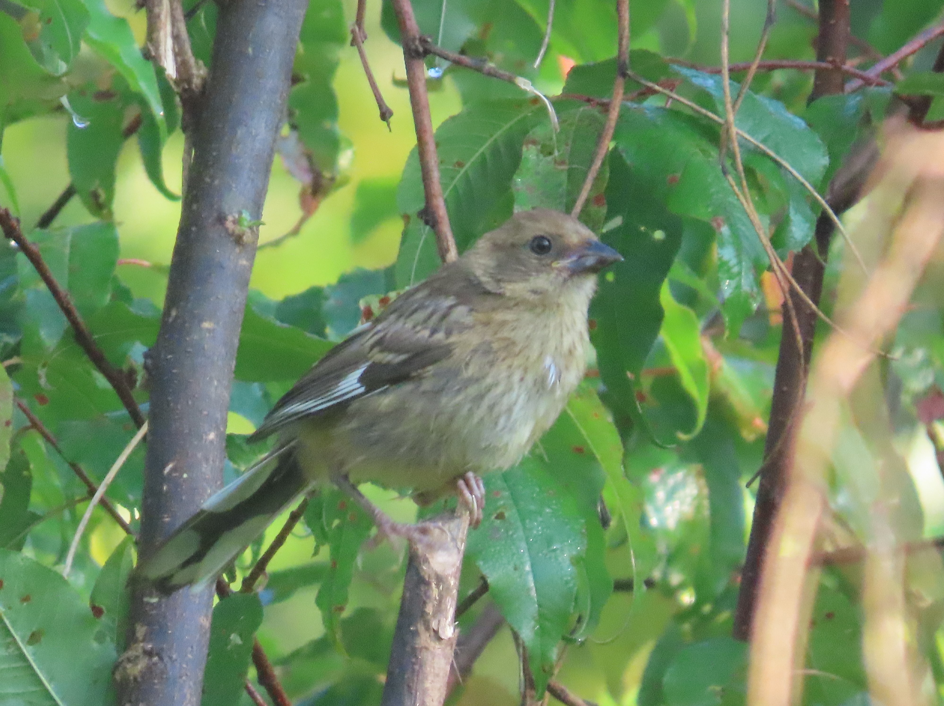 By mid-to-late April, breeders have returned to New Hampshire, and shortly thereafter will build their nests on the ground in dense thickets. The 3-5 eggs hatch in two weeks, and the chicks leave the nest after another 10-11 days. Juvenile towhees are much more sparrow-like than their parents and can pose an identification challenge for beginner birders. They start gaining the bold adult plumage by late August; however, the period of confusion is relatively short.