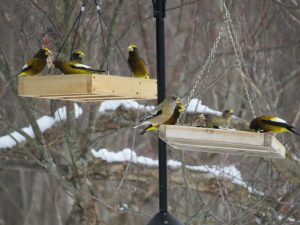 You can help collect valuable data on Evening Grosbeaks and other winter birds by participating in NH Audubon’s “Backyard Winter Bird Survey.” The survey will occur on February 14-15, 2026. Visit here for details.