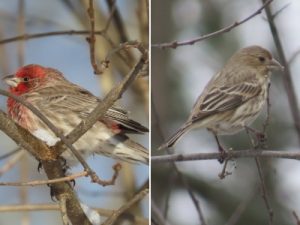 As we start the winter feeder season and lead up to NH Audubon’s Backyard Winter Bird Survey (see below), I thought it’d be fun to have something of a theme for upcoming “Bird of the Month” articles in the eNews. That theme is “Feeder Finches,” and we’ll start off with the familiar House Finch (Haemorhous mexicanus), which turns out to have quite an interesting backstory.