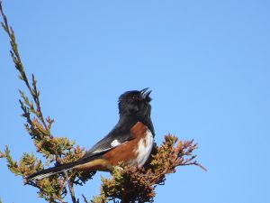 (Photos and story by Pam Hunt) The boldly marked Eastern Towhee (called the Rufous-sided Towhee before being split into eastern and western species) is New Hampshire’s largest member of the