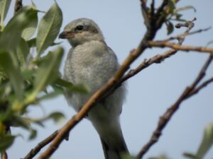 (Story and photos by Pam Hunt) For a bird lighter than a robin, the Northern Shrike (Lanius borealis) is an aggressive and tenacious predator. During the breeding season in the