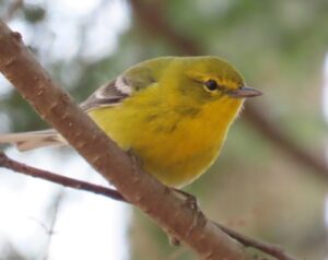 (Photos and story by Pam Hunt) It seems a little odd to feature a warbler in a Bird of the Month for March, but the Pine Warbler (Setophaga pinus) makes