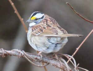 (Story and photos by Pam Hunt) While we tend to think most of the White-throated Sparrow (Zonotrichia albicollis) in association with its distinctive “Old Sam Peabody” song in spring and