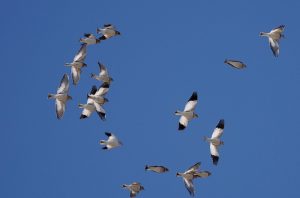 (by Doug Bechtel) As I was leaving the Post Office in Concord, I caught a glimpse of a flock of small, fast-flying birds over the large fields that border the