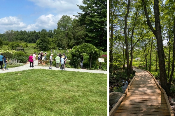 Earlier this month, the Massabesic Center held a special event to celebrate the opening of our brand new All Persons Trail at NH Audubon’s Massabesic Wildlife Sanctuary in Auburn. Envisioned by long-time volunteer and supporter Dee Cleary, Art Walk in the Garden came to life with a fun meld of nature, art, and frabjous community. Visitors were immersed in the experience as soon as they arrived, surrounded by gardens sprinkled with sculptures and novel outdoor-themed art pieces, painters set up with strategic viewpoints for live canvas painting, and blooming plants buzzing with pollinators.