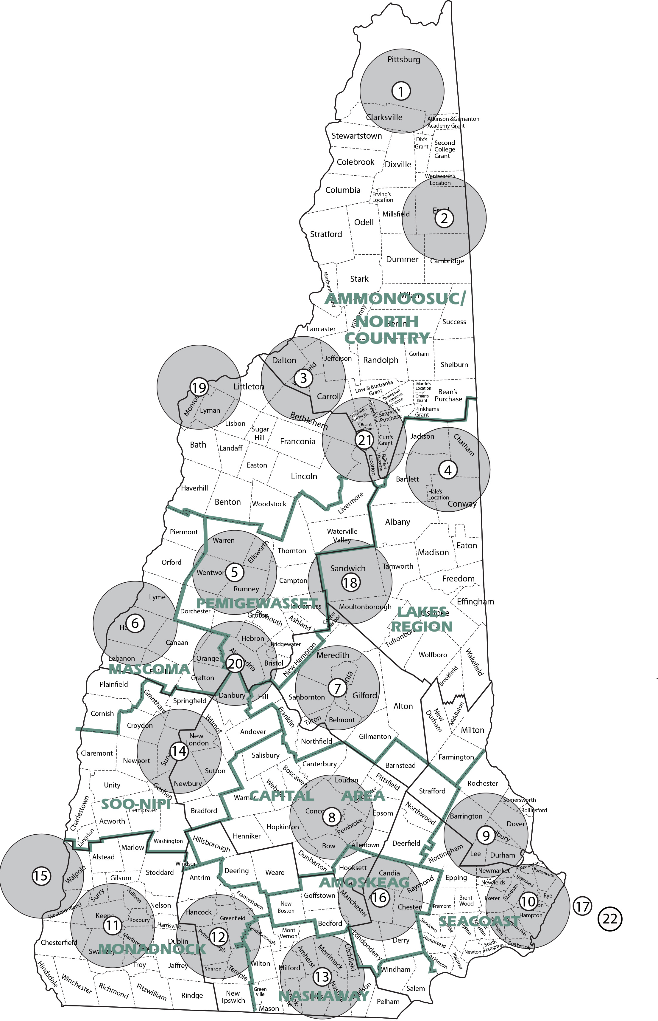 Download a pdf of Christmas Bird Count circles in New Hampshire