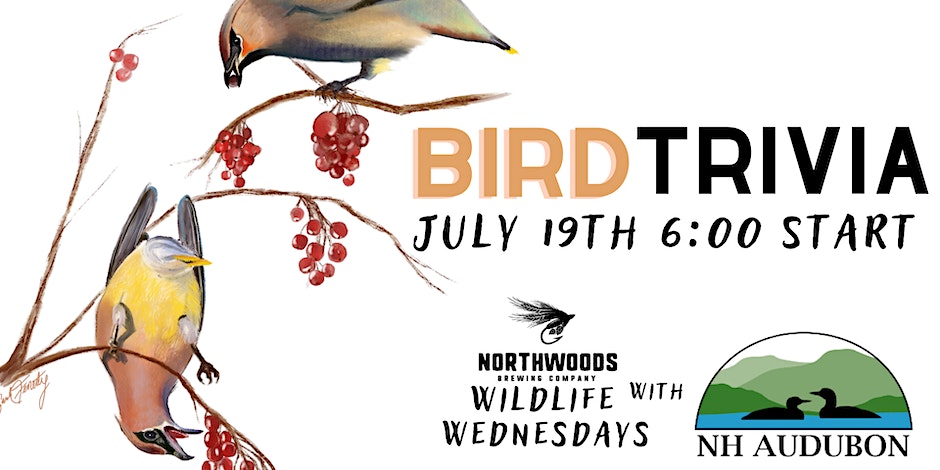 Come out to Northwoods Brewing Company for a night of bird trivia. Join Senior Biologist Chris Martin, Dyanna Smith, Parker Schuerman, and more birds of a feather for this fun event. From Amazing Adaptations to Fun With Mnemonics and everything in between, belly laughs and learning are a guarantee – there may even be a dance off bonus round! Tickets are $10 with proceeds going to NH Audubon. Teams and individuals encouraged, prizes for the top three teams. (Plus, Wednesdays are $5/pint nights!)