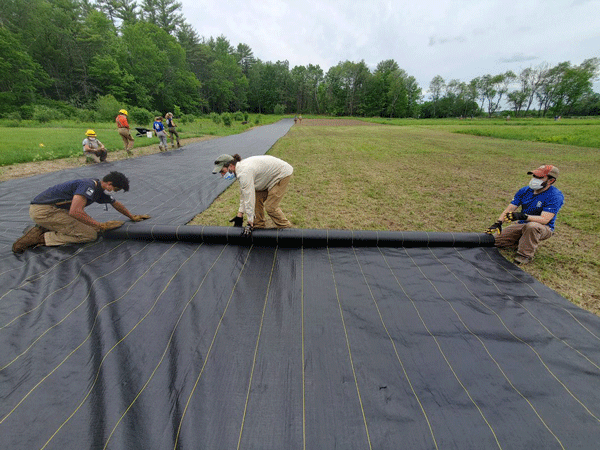 Photo: Volunteers help create pollinator meadow habitat at McLane Center, by Marc Nutter.