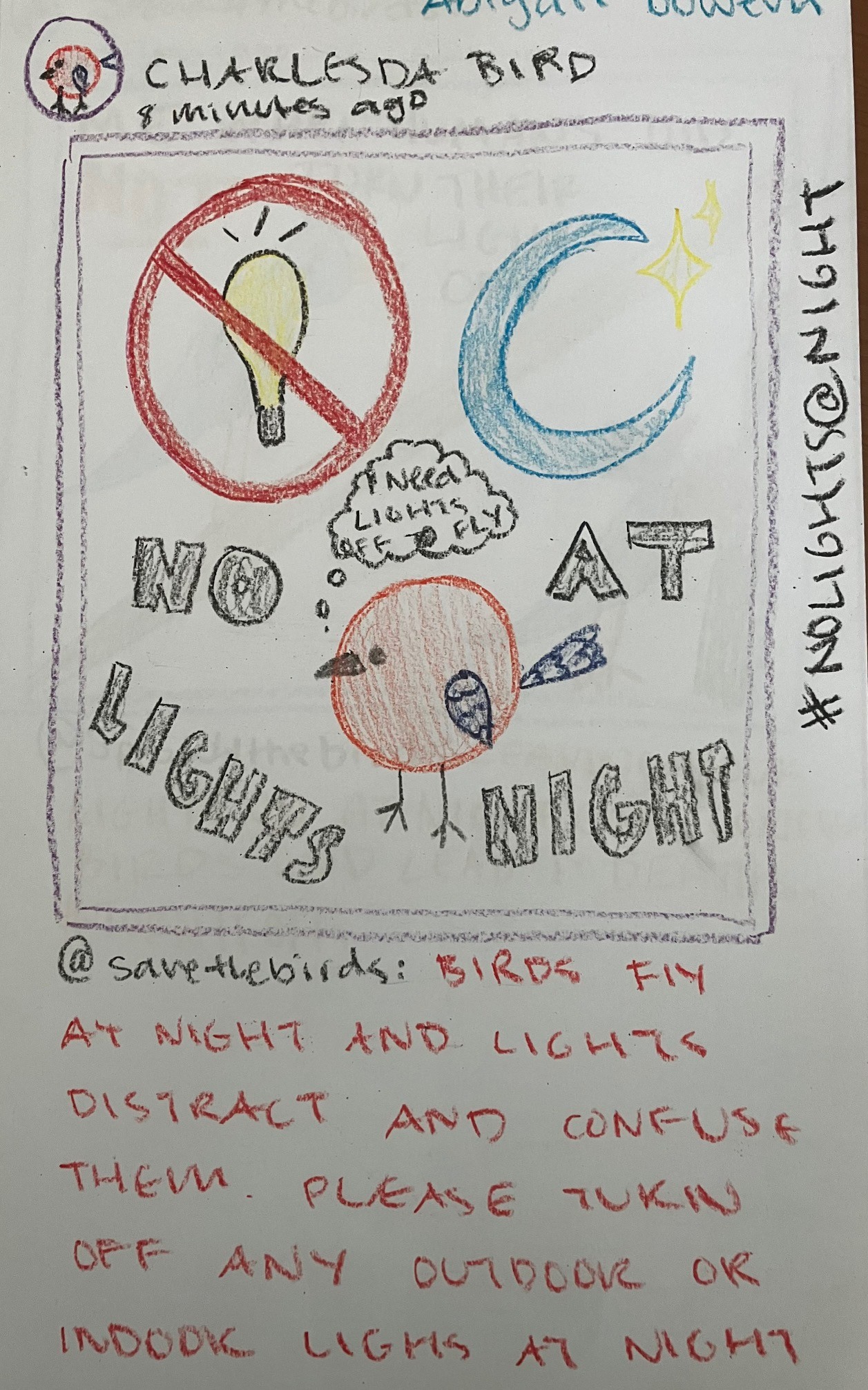 Our final lesson wrapped up in May with students tasked to develop action plans that would make their high schools (Memorial or Central) more bird-friendly. Designs ranged from window decals to prevent bird strikes and evening lights dimmed during peak migration periods, to native plants and shrubs replacing the current evergreens in the schoolyard. With social media tags and artwork to encourage awareness, the teens had phenomenal ideas that were far from impossible to implement. “Maybe we could actually do this!” exclaimed one junior in Manchester Central’s AP biology class after sketching a mock Instagram post for lights out at night.