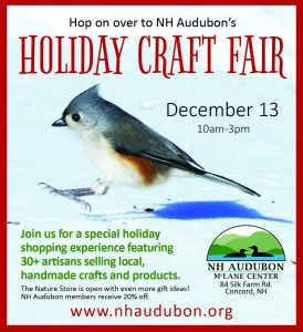 It’s the season of giving, and we hope as you shop for your loved ones you’ll keep your support for NH Audubon in mind. Our staff has curated a wide-ranging gift guide featuring products from our stores, including our very own Anita Fernandez’s new book, wildlife earrings, NH Audubon merchandise, and more! Stop by during our regular center hours in December for all of your gifting needs. And don’t forget, our Annual Holiday Craft Fair this Saturday is a great place to find special handcrafted presents too.