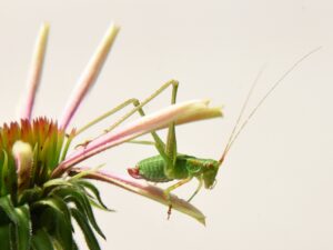 (Photo and story by Anita Fernandez) When you think of the word katydid, you probably think of large wings that resemble leaves, but this creature found perched on the edge